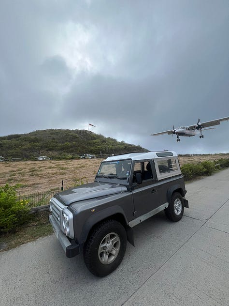 Cruising into Gustavia in a Defender feels like you belong. As a photographer, it’s also a dream subject, especially parked near the airport with planes dropping in just feet overhead.