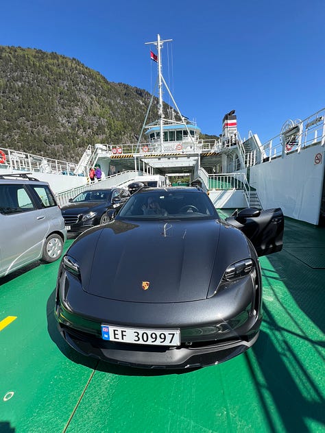 TRIPS of Norway, who also do production logistics for big film and TV shoots, delivered a Porsche Taycan to my hotel. All-electric. My first extended drive in one. The fjords are remote, so I had some range anxiety. Completely unfounded as it turned out that charging stations are everywhere, and most hotels have them.